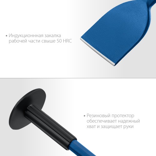 Зубило-конопатка с протектором ЗУБР 2123-75, предназначено для рубки или раскалывания различных материалов, конопатки срубов. Обрезиненная рукоятка с протектором способствует надежному хвату и защищает руки от удара молотком.